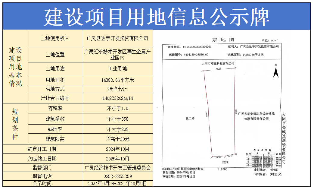建設項目用地信息公示牌